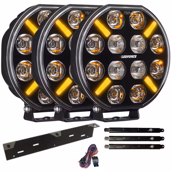 Extraljus paket 3 st LEDFORCE X-LED+ V2 3-PACK 160W LED Extraljus inkl. extraljushållare, stag och reläkabelsats - 9-32V
